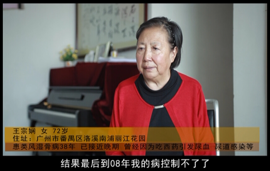 家住广州市番禺区洛溪南浦丽江花园的王女士 现年72岁 患有类风湿骨病38年 已接近晚期